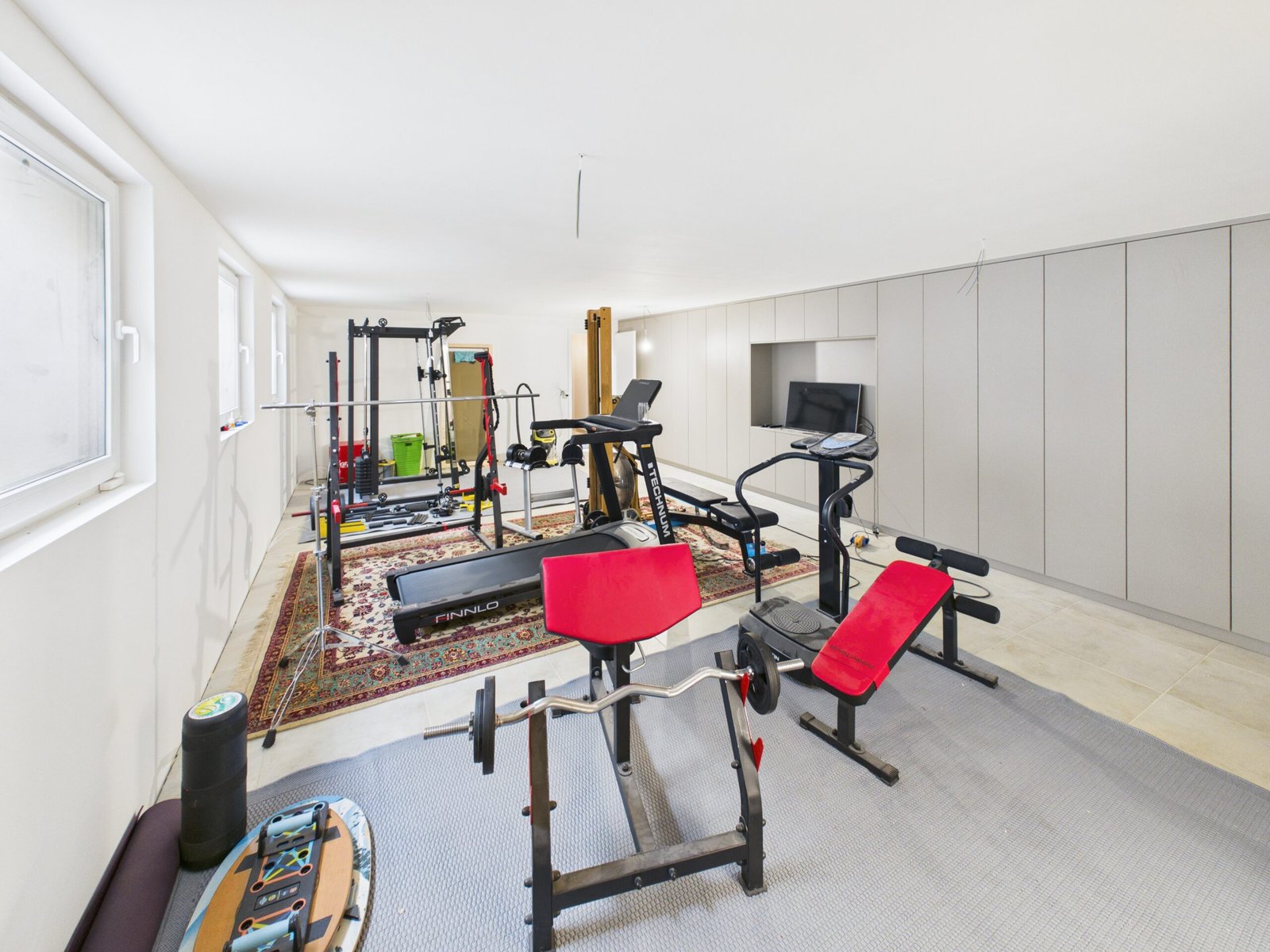 Le niveau inférieur accueille une salle de sport privée entièrement aménagée, pensée comme un véritable espace bien-être, complétée par une salle de bain intégrée avec douche. Cet ensemble offre un confort optimal pour une pratique sportive quotidienne, dans un cadre intime et fonctionnel, tout en conservant une parfaite séparation avec les espaces de vie.
