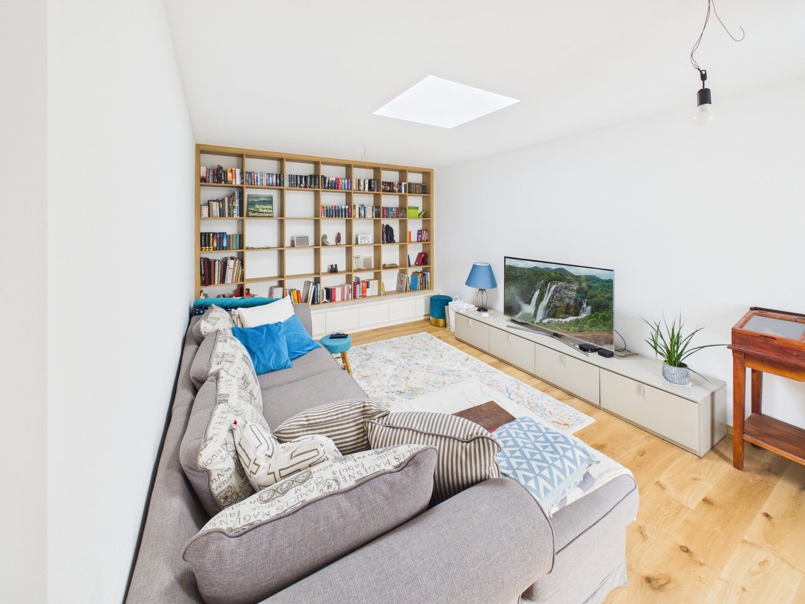 À l’étage, un second salon privé offre un espace de détente privilégié, idéal comme lounge, salon TV ou bibliothèque, renforçant la distinction subtile entre les espaces jour et nuit.